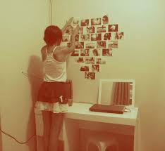 A única coisa que você tem de fazer é desenhar um coração na parede - com lápis mesmo e bem clarinho - e ir cobrindo e preenchendo o coração com fotos.